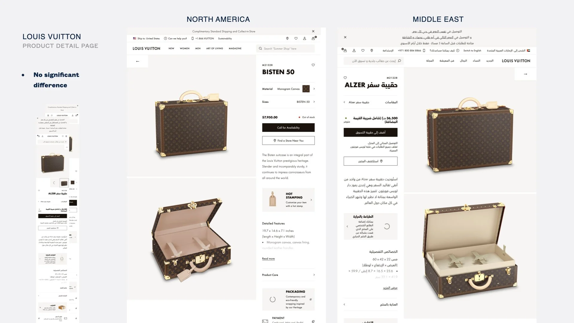 For Ralph Lauren’s Middle East e-commerce site, I benchmarked against global luxury and local fashion competitors. This revealed key expectations like streamlined checkout and regional payment options, while highlighting opportunities to stand out through elevated visuals and microinteractions.