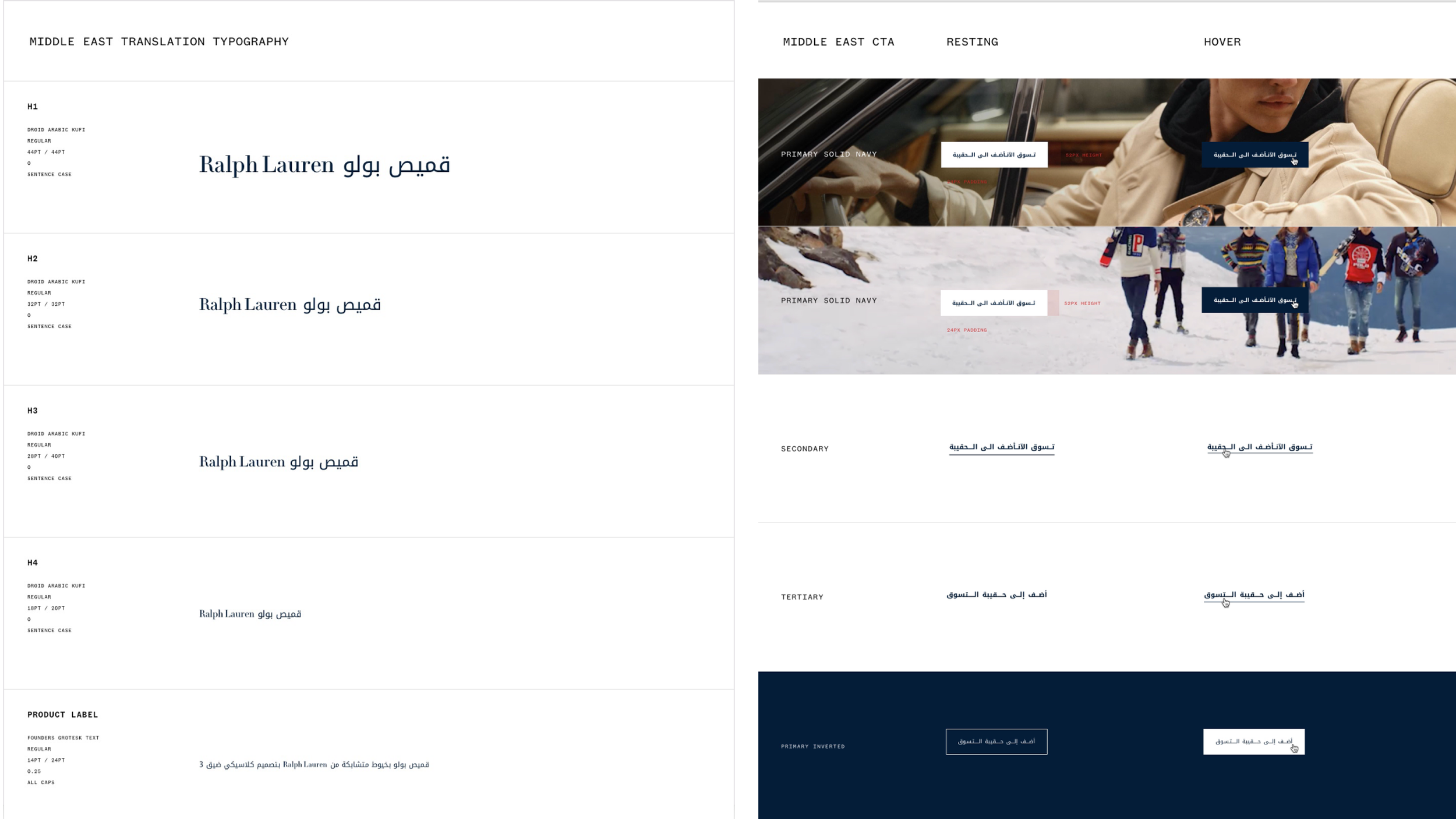To launch Ralph Lauren’s Middle East e-commerce site, I built an Arabic-specific design system that balanced right-to-left layouts and typography with the brand’s luxury aesthetic. This ensured production designers could update the site quickly while maintaining consistency, efficiency, and a premium customer experience.